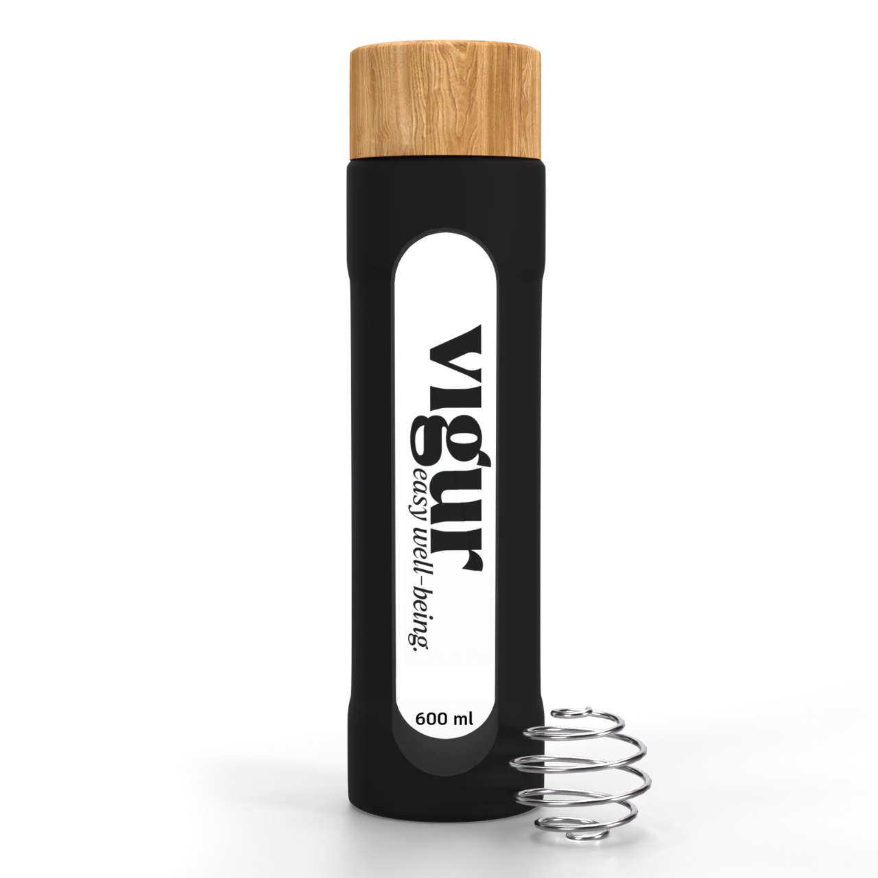 Oppdag vår 600 ml shaker flaske laget av robust borosilikatglass – perfekt for deg som ønsker en sunn og aktiv livsstil uten mikroplast.