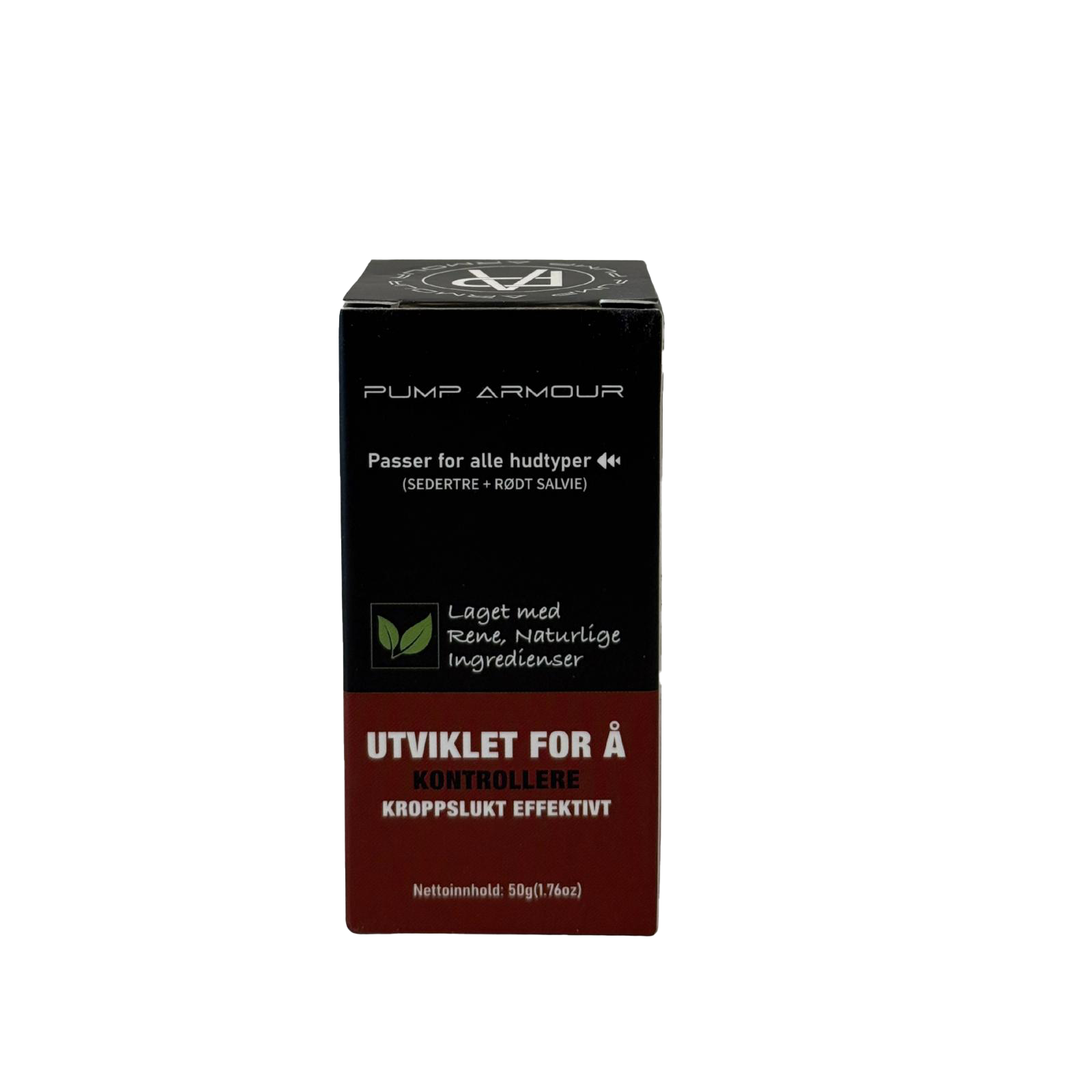 Pump Armour Treningsdeodorant er utviklet med rene og naturlige ingredienser for å gi effektiv luktbeskyttelse uten bruk av aluminium eller syntetiske kjemikalier. Formelen kombinerer fuktabsorberende plantepulvere, beroligende ekstrakter og eteriske oljer med antibakteriell effekt som stopper lukt ved kilden – samtidig som den pleier og beskytter huden.